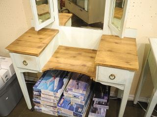 LOT 178 Vintage Aqua Printed Dressing Table & Mirror, 57 1/2"h. Estimate: $50 - $100 Auction Date: Tuesday, January 13 2026 at 4:00 PM
