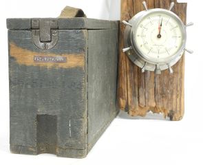 LOT 223 "Airguide" Thermometer & Barometer (5" diam.) with WWI Ammo Box, 12 3/4 "L. Estimate: $100 - $200 Sold For: $50 Auction Date: Tuesday, January 13 2026 at 4:00 PM