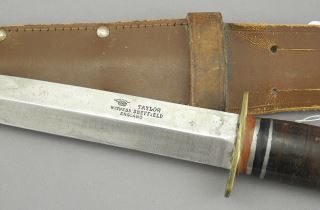 LOT 250 Taylor Witness Sheffield Knife with Sheath, 11 3/8"L. Estimate: $50 - $100 Sold For: $130 Auction Date: Tuesday, January 13 2026 at 4:00 PM