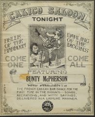 LOT 20 Vintage "Calico Saloon Tonight" Poster, 16 1/2 x 13 1/4". Estimate: $60 - $100 Sold For: $60 Auction Date: Tuesday, January 13 2026 at 4:00 PM