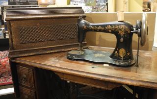 LOT 249 Oak Cased Singer Sewing Machine, 40"h. Estimate: $60 - $100 Sold For: $30 Auction Date: Tuesday, January 13 2026 at 4:00 PM