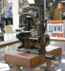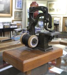"The Tabitha" Miniature Sewing Machine (4"h) on Wood Plinth.