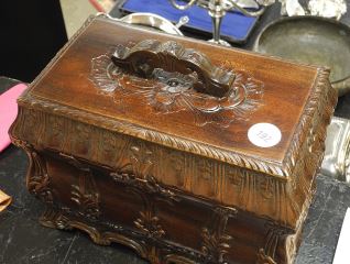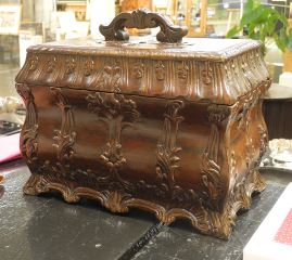 South East Asian Mahogany Jewelry Box, 9 x 12 x 7".