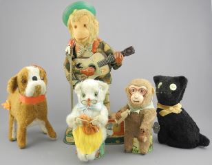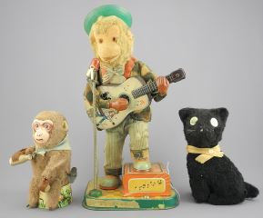 LOT 253 Collection of Clockwork & Battery Powered Animals, Drinking Monkeys (arms noted). Estimate: $50 - $100 Sold For: $80 Auction Date: Tuesday, January 13 2026 at 4:00 PM