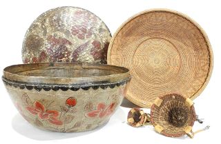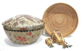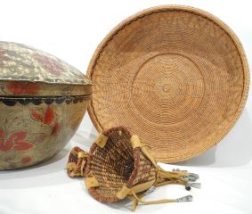 LOT 193 Collection of Woven Fibre Items & Papier Mache Domed Box. Estimate: $50 - $100 Sold For: $60 Auction Date: Tuesday, January 13 2026 at 4:00 PM