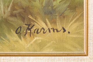 Oil on canvas signed O. Karms, (Osvald),21" x 25", "Danish Farmhouse".