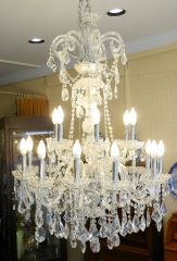 18 Branch Glass Chandelier, 60" high, ( 1 arm damaged ).