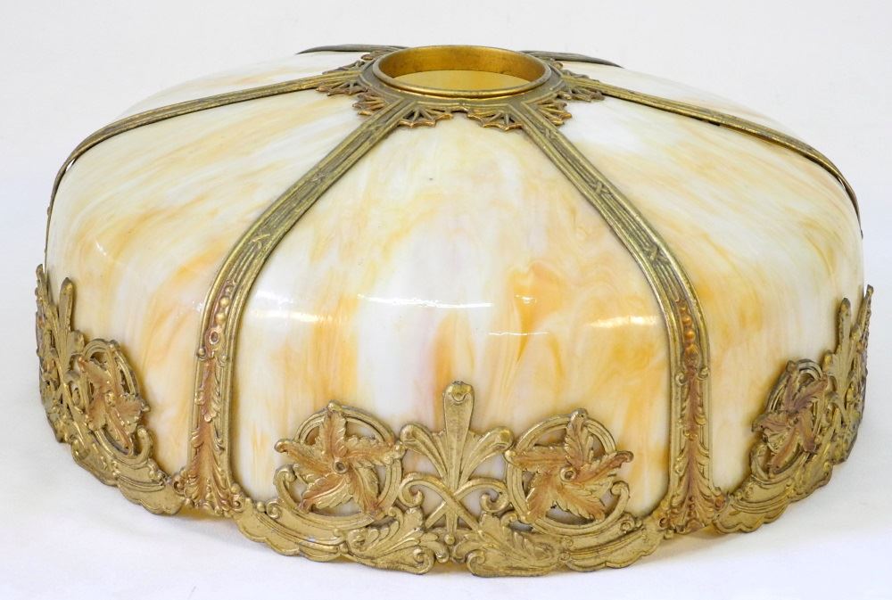 LOT 262 Vintage Caramel Glass 6 Panel Lamp Shade, 16" diameter. Estimate: $100 - $200 Sold For: $120 Auction Date: Tuesday, July 20 2021 at 6:00 PM