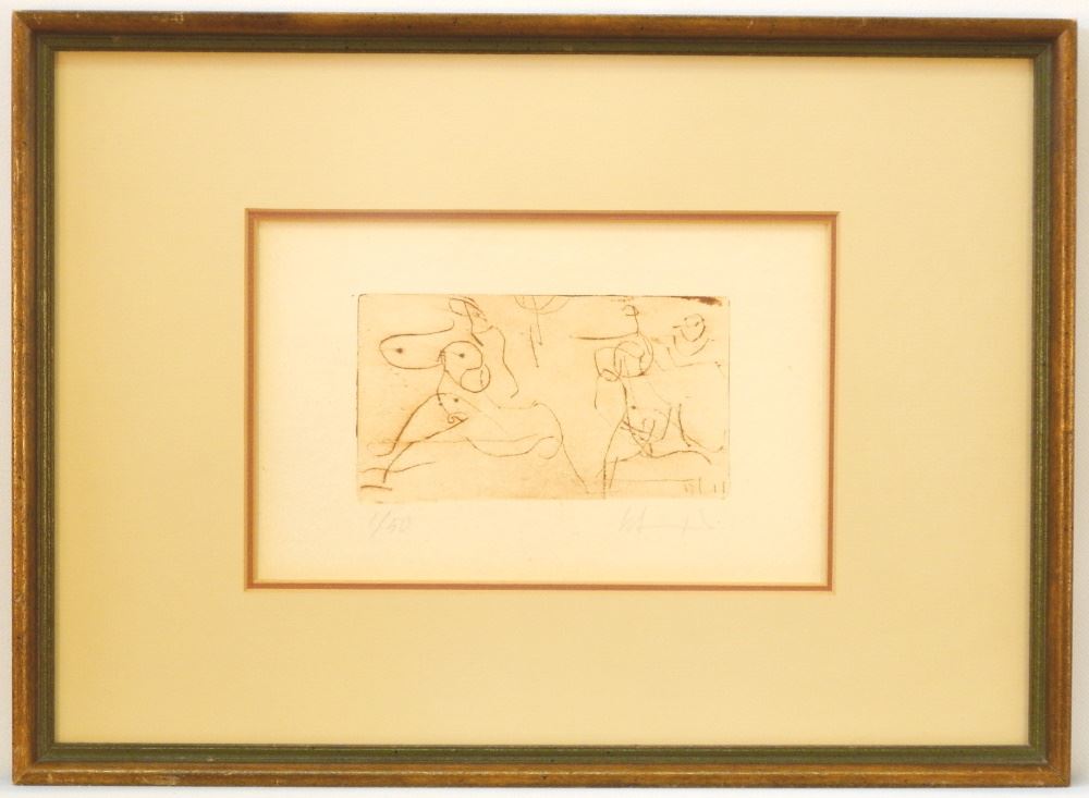 LOT 316 Sepia Tone Etching Signed H. Siebner #1/50, 4 5/8" x 7 1/2", "Figures". Estimate: $100 - $200 Auction Date: Tuesday, July 20 2021 at 6:00 PM