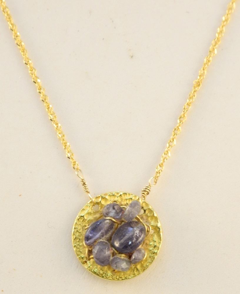 14K Gold Necklace with Custom Made Gold Tone & Amethyst Pendant.