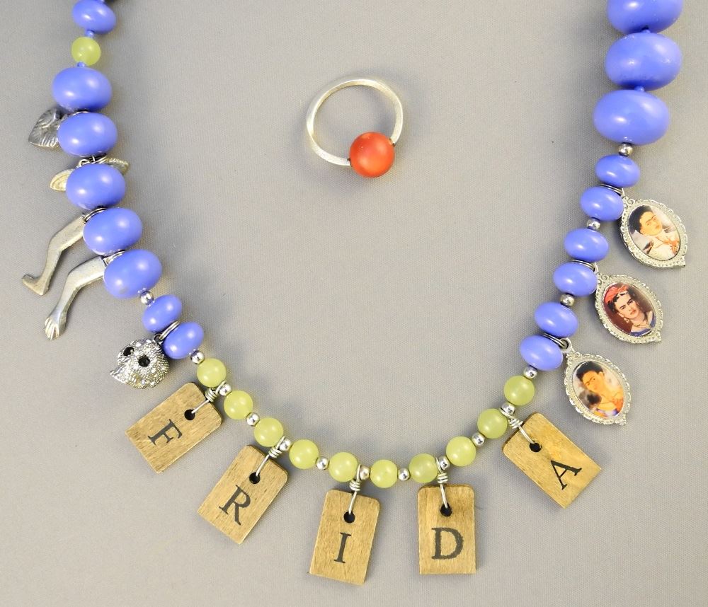 LOT 96 Custom Made "Frida" Necklace & a Coral Sphere Ring. Estimate: $80 - $100 Auction Date: Tuesday, July 20 2021 at 6:00 PM