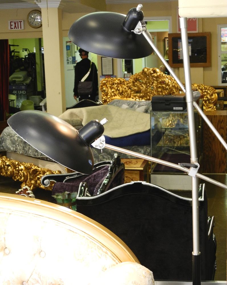 LOT 37 Anglepoise Floor Lamp with Double Dish Shades, 59" high variable. Estimate: $50 - $80 Sold For: $200 Auction Date: Tuesday, September 14 2021 at 6:00 PM