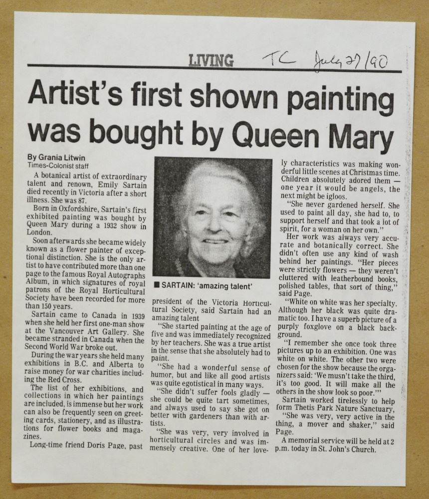 LOT 133 Watercolour signed E. (Emily) Sartain, 13 1/2" x 9", "Camas & Bluebell". Estimate: $50 - $70 Sold For: $60 Auction Date: Tuesday, November 02 2021 at 6:00 PM