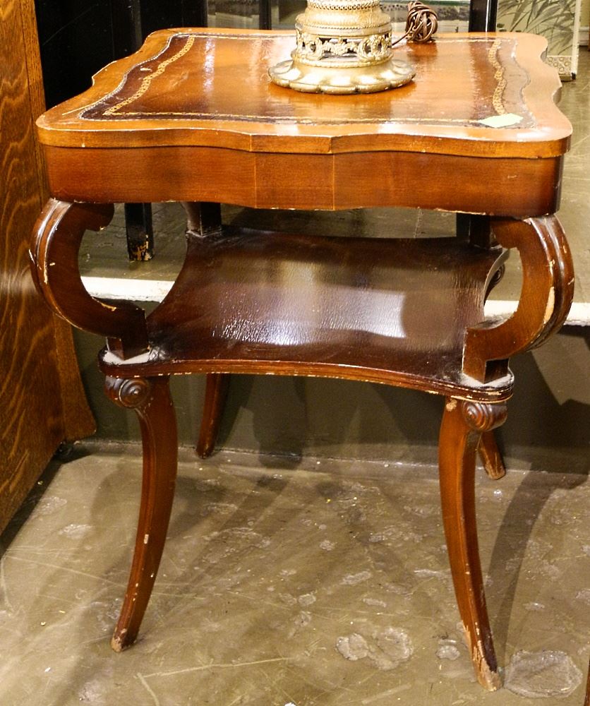 LOT 83 Pair of Tooled Leather Top Shaped Lamp Tables. Estimate: $100 - $150 Sold For: $70 Auction Date: Tuesday, November 02 2021 at 6:00 PM