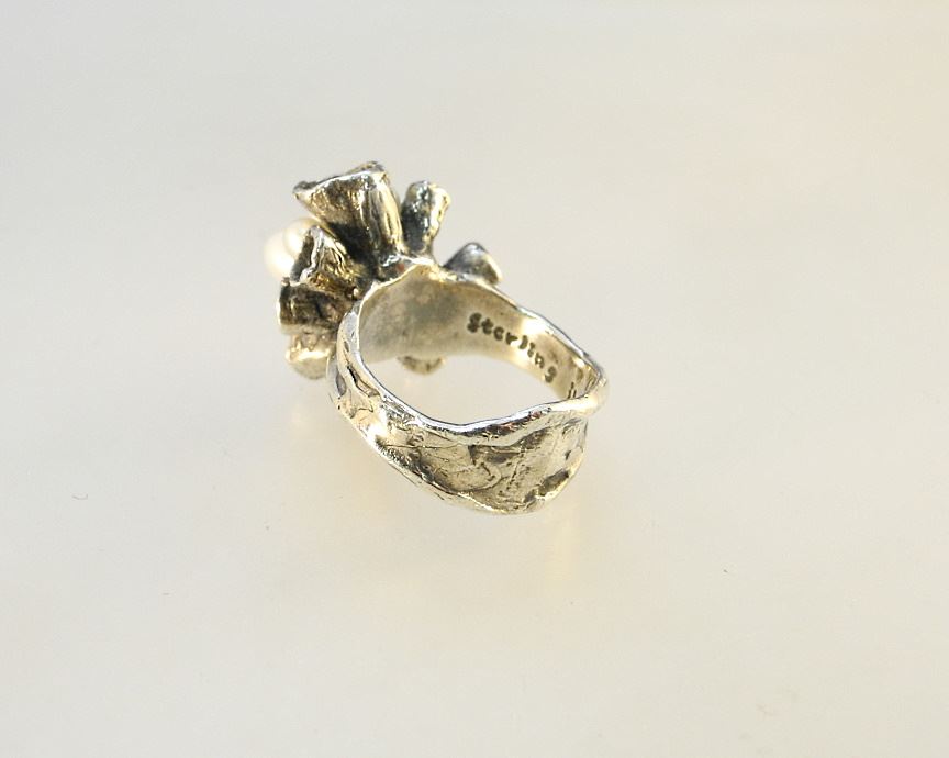 LOT 65 Modernist Sterling & Pearl Ring, size 6 1/2". Estimate: $60 - $80 Auction Date: Tuesday, November 02 2021 at 6:00 PM
