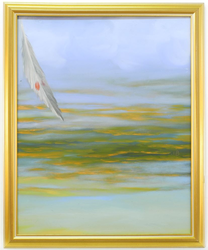 Oil on Board signed John Boehme verso, 19 1/2" x 15 1/2", "We Are All Feathers in the Wind".