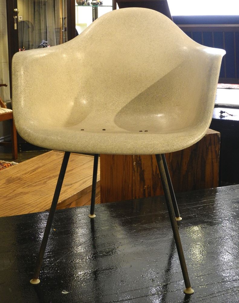 LOT 84 Herman Miller Armchair, As Found/ Drilled, 31" High. Estimate: $75 - $125 Sold For: $100 Auction Date: Tuesday, January 25 2022 at 6:00 PM