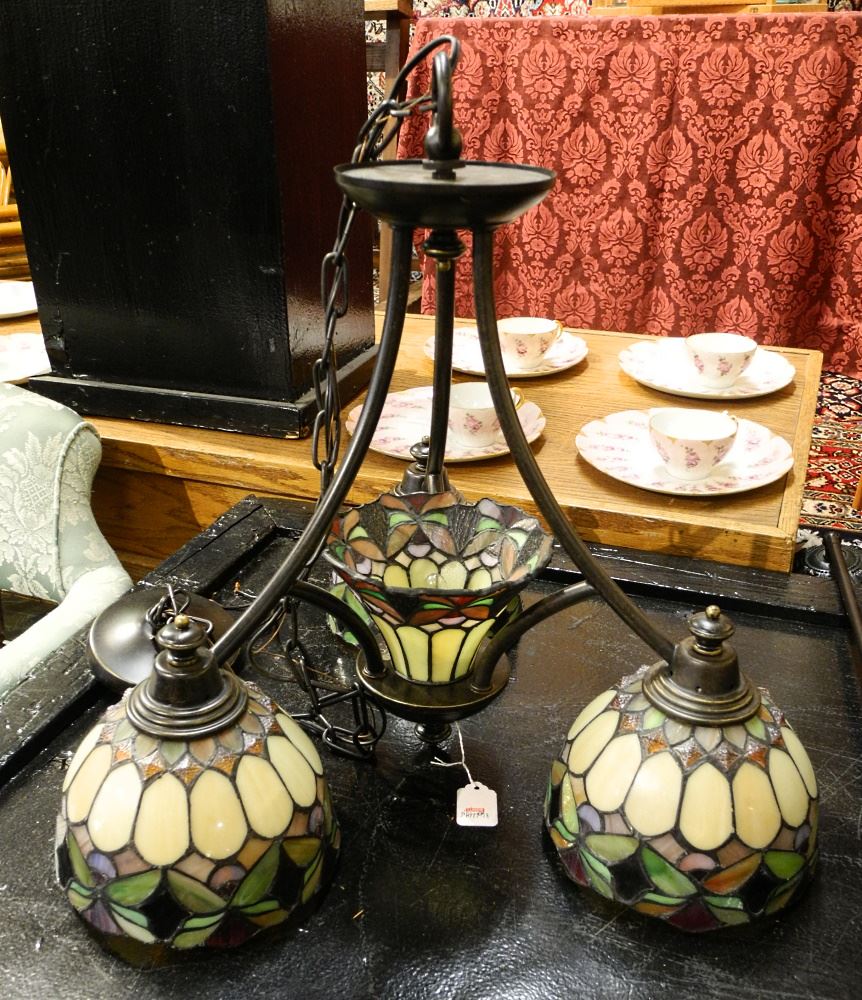 3 Quoizel Stained Glass Light Fixtures: 2 Single Light, 1 Multi Light.