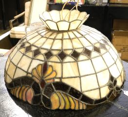 Leaded Glass Pendant Light Fixture, 21 3/8" Diameter.