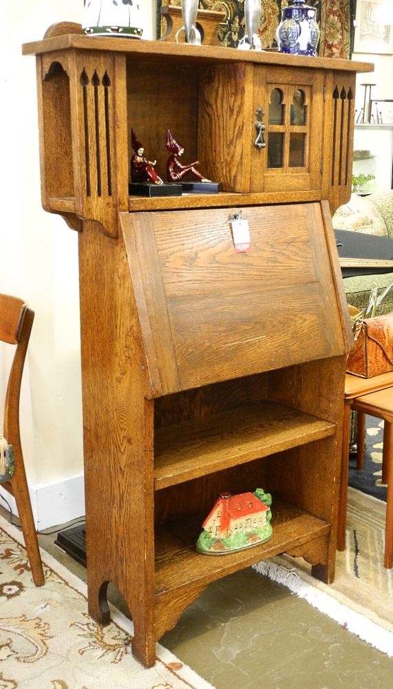 Quaint Arts & Crafts Oak Secretary Bookshelf, 57 1/4" x 33" x 11 1/2".