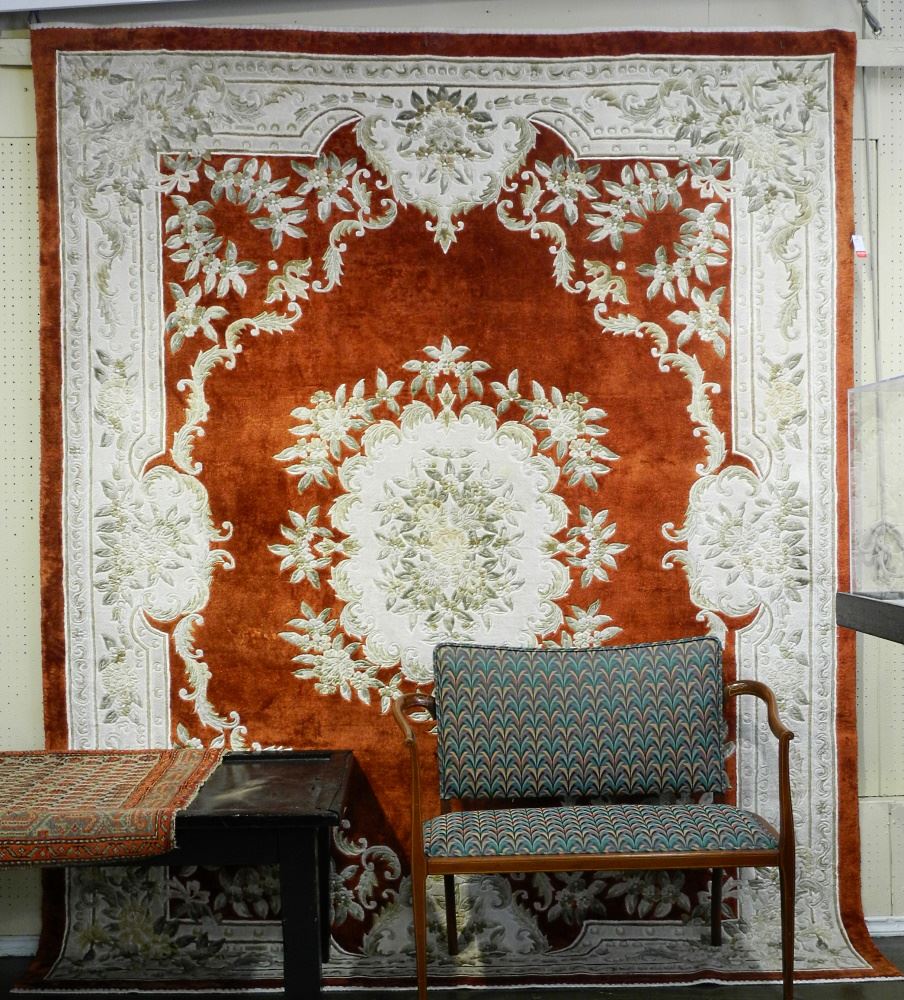LOT 160 Chinese Scarlet Silk & Cotton Carpet, Approximately 10' x 8'. Estimate: $500 - $800 Auction Date: Tuesday, July 26 2022 at 6:00 PM