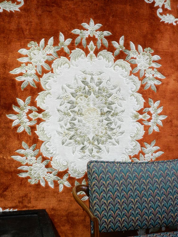 Chinese Scarlet Silk & Cotton Carpet, Approximately 10' x 8'.