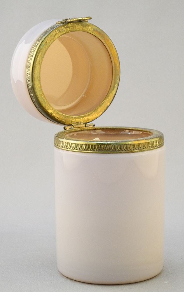 LOT 331 French opaline Glass Hinged Jar, 5" High. Estimate: $100 - $150 Auction Date: Tuesday, July 26 2022 at 6:00 PM