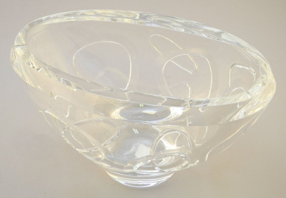 LOT 49 Modern Design Heavy Cut Crystal Vase, 9 1/2" Wide. Estimate: $60 - $120 Auction Date: Tuesday, July 26 2022 at 6:00 PM