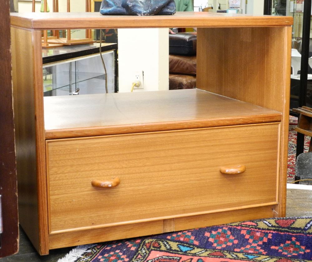LOT 48 Teak Entertainment stand. Estimate: $25 - $50 Sold For: $40 Auction Date: Tuesday, July 26 2022 at 6:00 PM