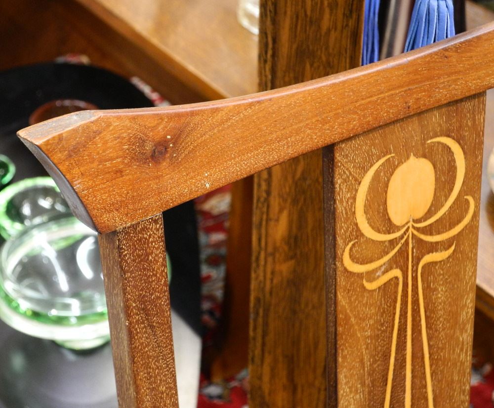 Inlaid Mahogany Art Nouveau Side Chair, Cresting Rail Chipped, 36 1/8" High.