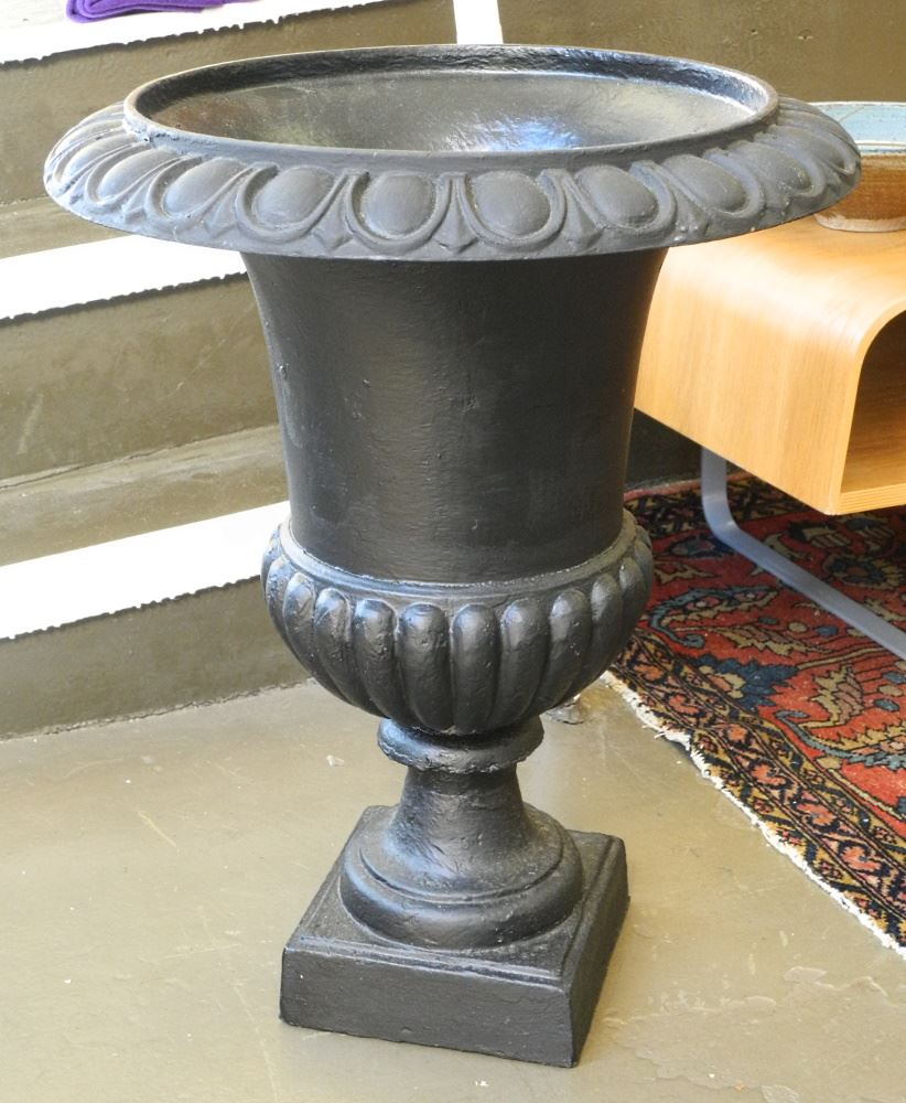 LOT 391 Pair of Cast Iron Urns, 24" High. Estimate: $100 - $200 Sold For: $400 Auction Date: Tuesday, July 26 2022 at 6:00 PM