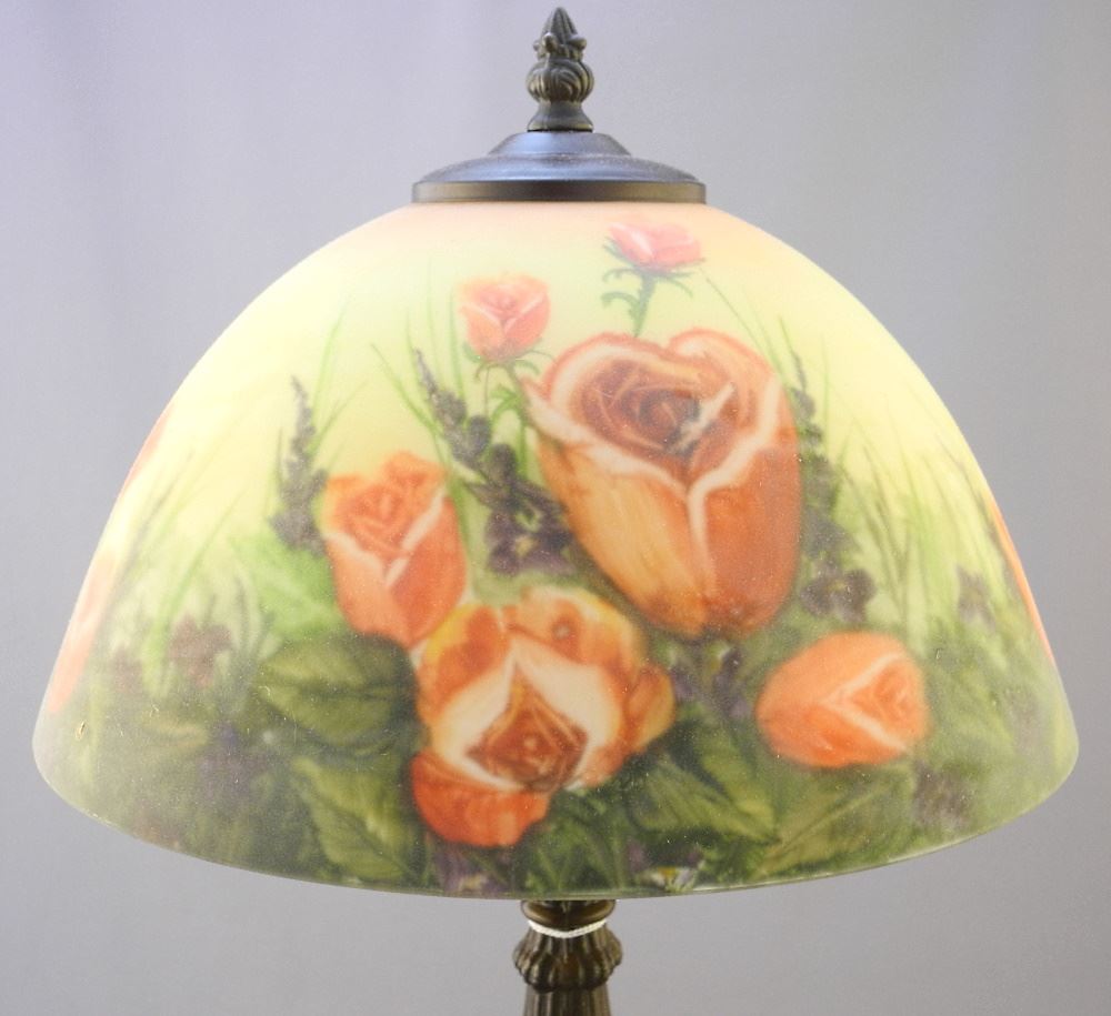 Table Top Lamp with Hand Painted Glass Shade, 18 1/2" High.
