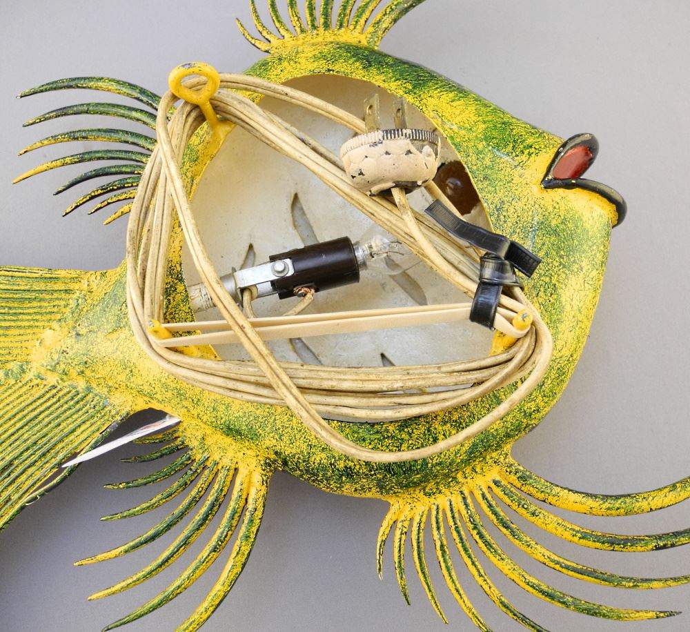 LOT 211 Enameled Metal "Fish" Wall Lamp, 17 1/2" Length. Estimate: $100 - $200 Sold For: $70 Auction Date: Tuesday, July 26 2022 at 6:00 PM