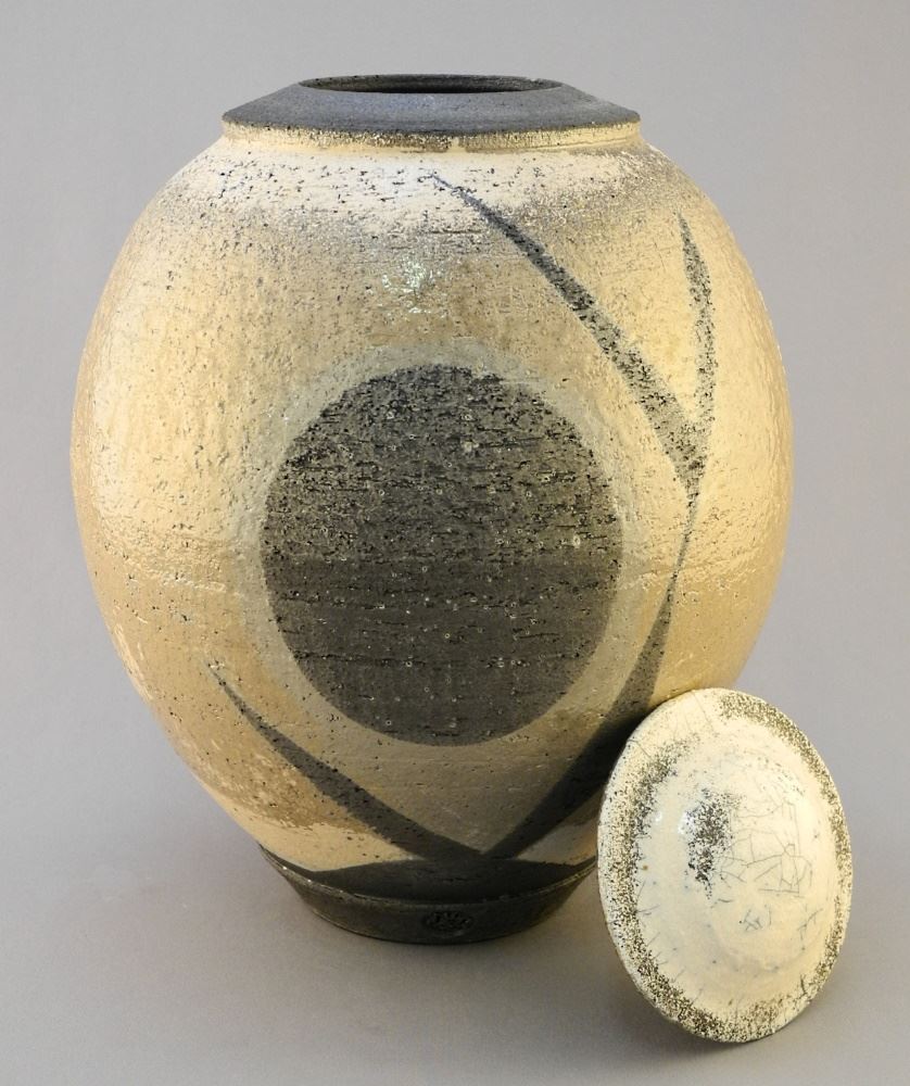 LOT 284 Oviform Raku Covered Jar, Impressed Mark, 10 1/4" High. Estimate: $50 - $70 Auction Date: Tuesday, July 26 2022 at 6:00 PM