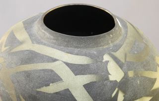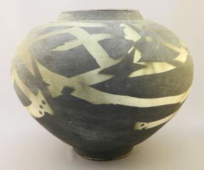 LOT 115 Stencilled Raku Vase Monogrammed WB'87, 9 3/4" x 12" Diameter. Estimate: $60 - $100 Sold For: $40 Auction Date: Tuesday, July 26 2022 at 6:00 PM