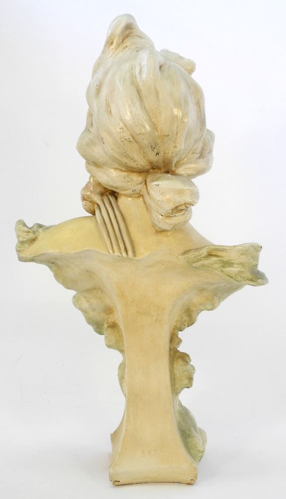 LOT 42 Cast Plaster Bust of an Art Nouveau Maiden, Faint Signature Verso, 26"H. Estimate: $100 - $200 Auction Date: Tuesday, July 26 2022 at 6:00 PM