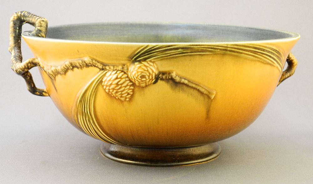Roseville Pinecone Bowl, 11" diameter.