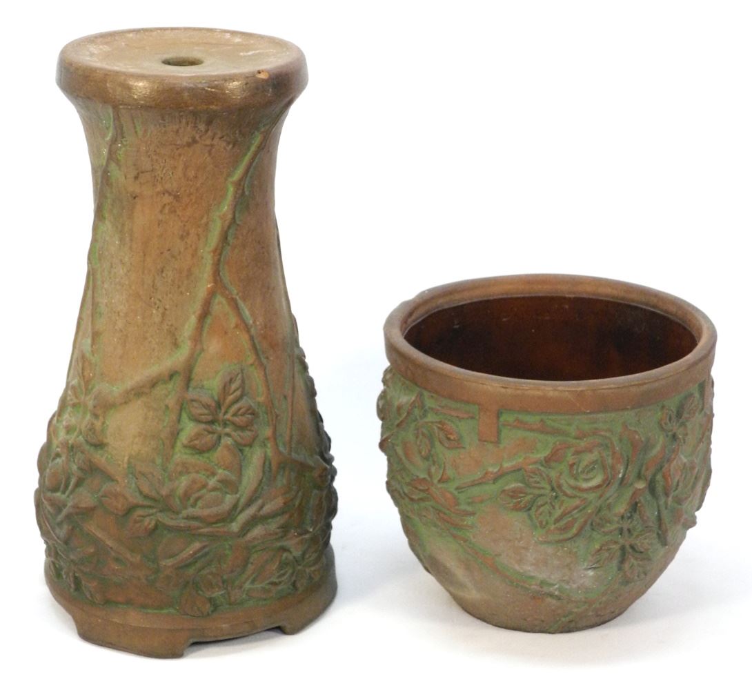 Peters & Reed Moss Aztec Jardiniere/ Pedestal, 25" high.