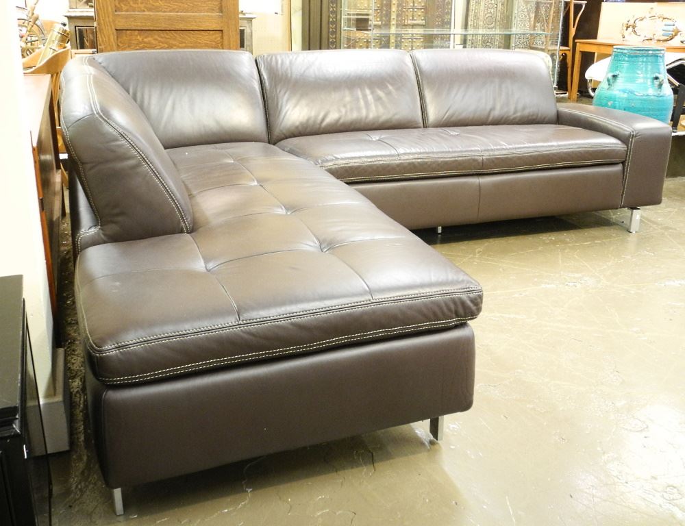 W. Schillig Brown Leather Sectional Sofa, 9'long.