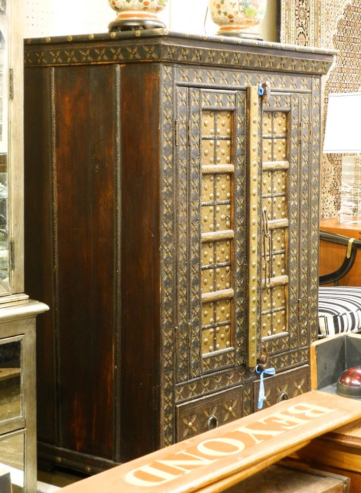Middle Eastern Metal Mounted Double Door Cabinet, 57 1/4" x 40" x 28".