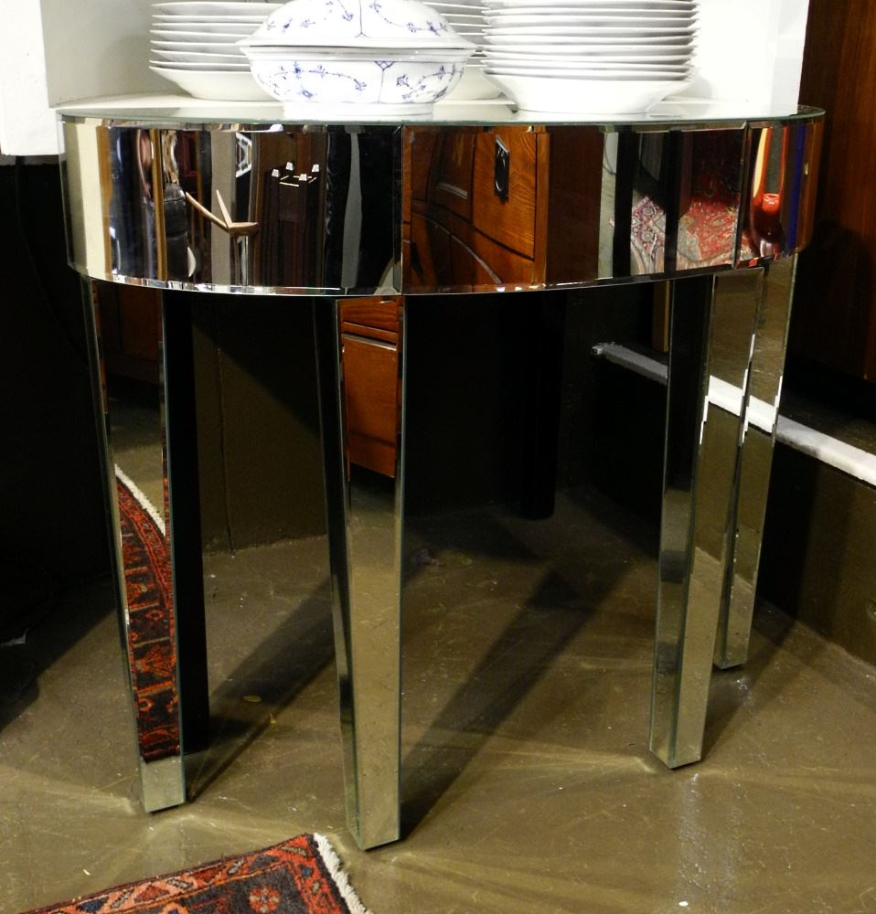 LOT 248 Mirrored Demilune Console Table. Estimate: $60 - $100 Sold For: $60 Auction Date: Tuesday, March 14 2023 at 4:00 PM