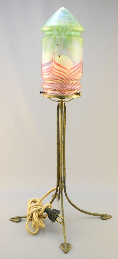LOT 229 Quattro Columnar Bronze Arts & Crafts Desk Lamp, With Iridescent Feather Shade. Estimate: $120 - $180 Sold For: $275 Auction Date: Tuesday, March 14 2023 at 4:00 PM