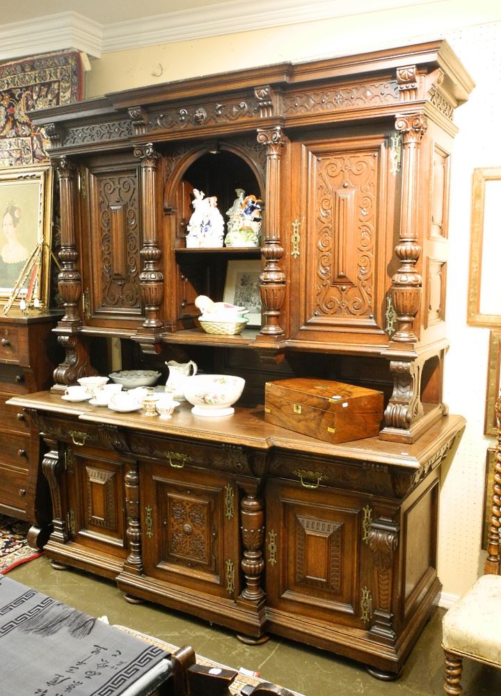 LOT 148 19th Century Austrian Carved Oak Buffet Cabinet, 7'2"X6'5"X2'7". Estimate: $400 - $600 Sold For: $150 Auction Date: Tuesday, March 14 2023 at 4:00 PM