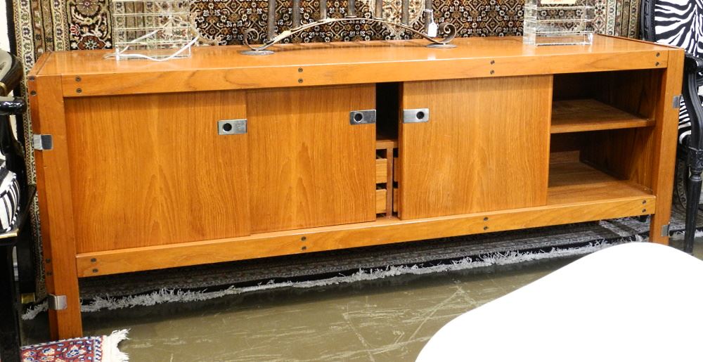 LOT 87 Danish Modern Teak Sideboard, 74"L. Estimate: $250 - $500 Sold For: $275 Auction Date: Tuesday, March 14 2023 at 4:00 PM