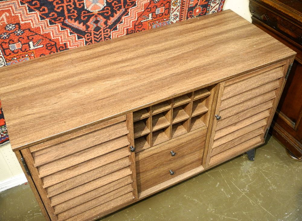 LOT 153 Louvered Low Cabinet with Wine Storage, 47 1/4"W. Estimate: $60 - $100 Auction Date: Tuesday, March 14 2023 at 4:00 PM