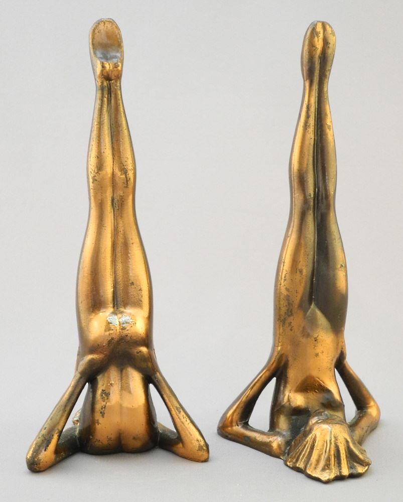 Pair of Copper Patina Alloy Bookends "Nudes", 8 1/2"H.