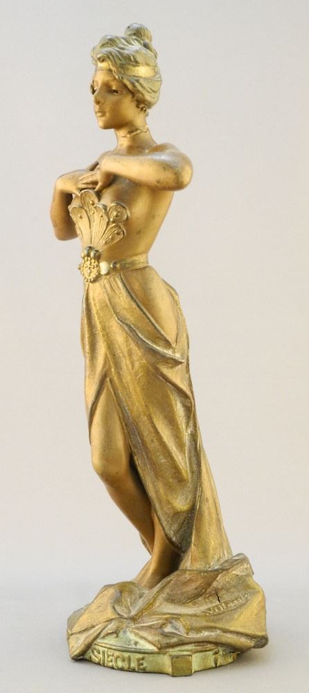 LOT 27 Spelter Figure Signed E. (Emmanuel) Villanis, 11 1/2" H "Nouveau Siecle" Condition Noted. Estimate: $200 - $300 Sold For: $200 Auction Date: Tuesday, May 02 2023 at 4:00 PM