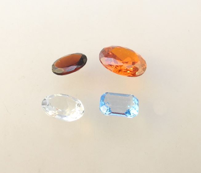 Group on 4 Semi-Precious Gemstones; Topaz/Aquamarine/ 2 Garnets.