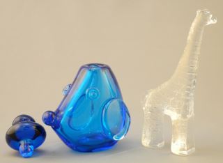 Rosenthal Pollo Vase, 4 3/4"L / B.Vallien Giraffe / Blue Dog Bottle / Pottery Bird.