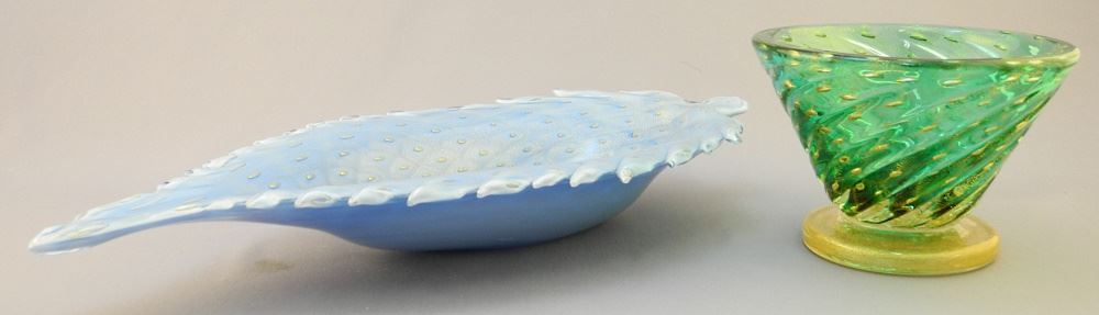 LOT 249 3 Murano Glass Dishes, Leaf Shaped, 12 1/2"L. Estimate: $60 - $100 Sold For: $30 Auction Date: Tuesday, July 18 2023 at 4:00 PM